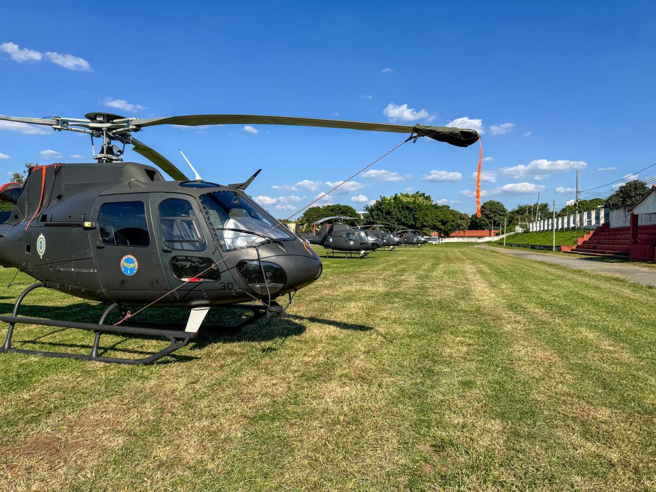 Estão presentes cinco helicópteros AS50 Fennec e um helicóptero H 225M Jaguar (Foto: Divulgação/Regimento Deodoro)
