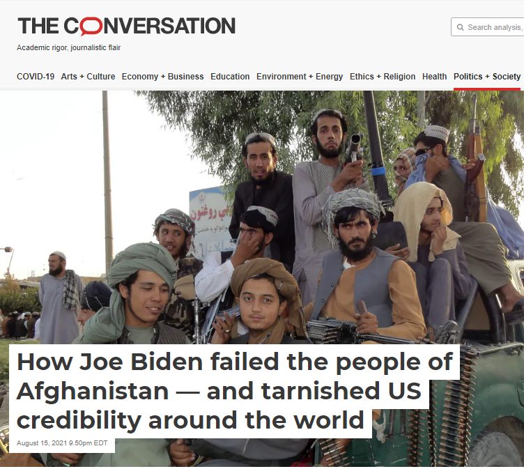 Toda a ação dos EUA nos últimos anos foi desastrosa , culminando na retomada do Afeganistão pelo Talibã. Vinte anos de guerra e um trilhão de dólares depois, Joe Biden declarou: “Fui o quarto presidente a presidir com tropas americanas no Afeganistão — foram dois republicanos e dois democratas. Eu não iria, e não irei, entregar esta guerra para um quinto”.