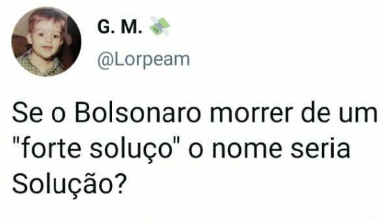 Há também hashtags típicas do Gabinete do Ódio, como a de sempre em momentos de desespero (quem mandou matar Bolsonaro?), e algumas que não deram muito certo, como “Forca Bolsonaro”, sem a cedilha, o que fez muita gente concordar, e “Orem pelo presidente”. Muita gente orou. Não exatamente pela sua recuperação.