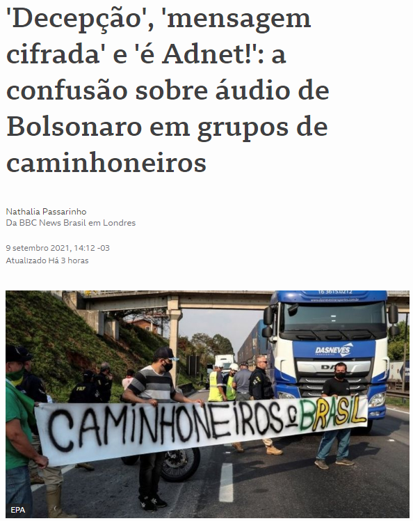 Bolso divulgou um áudio pedindo o fim dos bloqueios. Os caminhoneiros golpistas não quiseram acreditar. Um deles escreveu no Whats: “Torcendo para que seja fake”. Outro falou que tratava-se de uma mensagem cifrada. Muitos preferiram crer que era o (grande) comediante Marcelo Adnet imitando o presidente. O próprio Adnet aproveitou pra gravar um áudio com a voz de Bolso… mandando os caminhoneiros dançar “Macarena” sem parar, até que “aquele um” (o ministro Xandão) caísse (e a gente caiu na risada ).