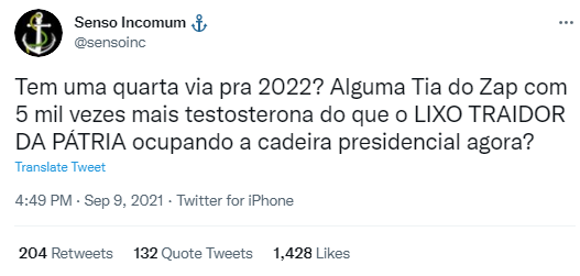 Mas convocar outra manifestação com o gado vai ficar beeeem mais difícil. Pra esse eleitorado raiz, esses 15% ou 20% que ainda defendem o Capetão, a virilidade é fundamental. Bolso tem que ser macho tóxico, e é por isso que ele vive se dizendo “imbrochável”, por exemplo. Desta vez ele definitivamente brochou.