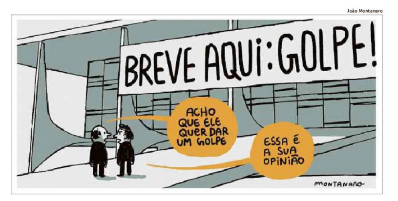 O que vivemos e viveremos é tão e somente fruto da “brincadeirinha” que o Brasil resolveu fazer com a democracia em 2016. O custo é alto. Termino essa coluna que virou textão aderindo à futurologia de Marcia Tiburi no Twitter , porque acho que ela tem toda razão: “Vai acontecer um golpe militar e ele será uma caricatura de 1964, assim como Bolsonaro será um ditador caricatural. O golpe vai ser ainda mais grotesco do que todos os que já vimos e vamos ficar ainda mais estarrecidos do que estamos hoje”.