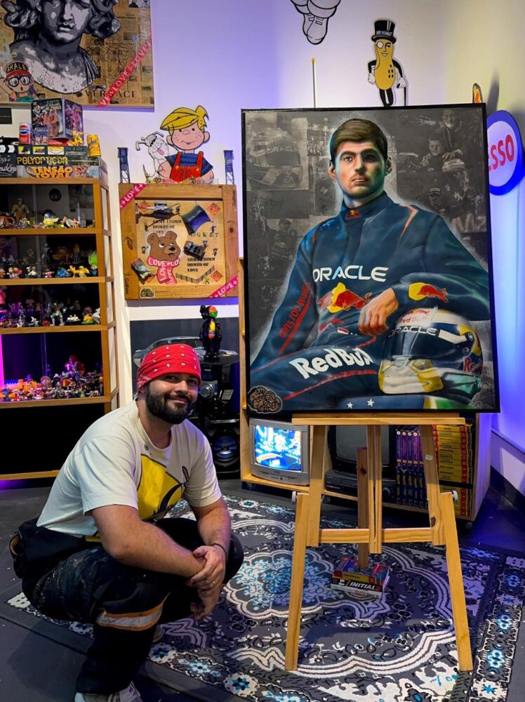 Em novembro, o artista produziu duas obras que chegaram até a equipe Red Bull Racing: uma feita para o mecânico Luke Heath e outra dedicada ao tetracampeão Max Verstappen. O contato ocorreu por meio de seu amigo, o também artista Wellington “Turbo”, conhecido no meio automotivo, que intermediou a conversa entre o artista e o mecânico da escuderia.