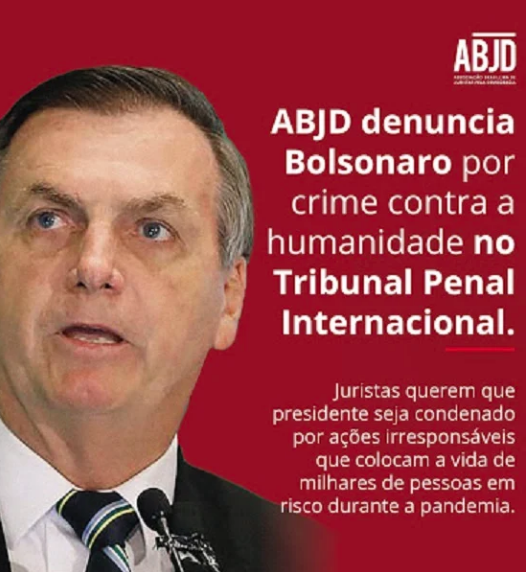 Em 2 de abril do ano passado, a ABJD já havia entrado com representação ao Tribunal Penal Internacional contra Bolso por crimes contra a humanidade . Mesmo com a pandemia ainda no início, já era possível ver que o pior presidente descumpria todas as normas sanitárias preventivas, como as de isolamento e quarentena. Além disso, era contra se submeter a exames médicos. A ABJD tomou essa medida drástica de apelar ao Tribunal Internacional depois que o procurador-geral da República arquivou sem análise dezenas de representações. Dessa forma, o STF não podia abrir inquéritos para investigar as ações.