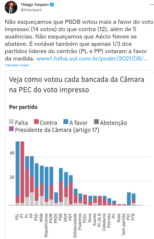 Eu vi aquela palhaçada autoritária de colocar tanques na rua enquanto a Câmara votava uma das principais bandeiras do Capetão, o voto impresso. Ele foi derrotado no Congresso que comprou com nosso dinheiro. Mas não foi a derrota acachapante que queríamos: foram 218 votos contra e 229 a favor. Pra PEC ser aprovada, eram necessários 308 votos. Os 229 votos foram importantes pra nos lembrar que não temos apenas o pior presidente da história, mas também o pior Congresso. E que o impeachment de Bolso nunca passaria lá (mas suponho que já sabíamos disso, não?).