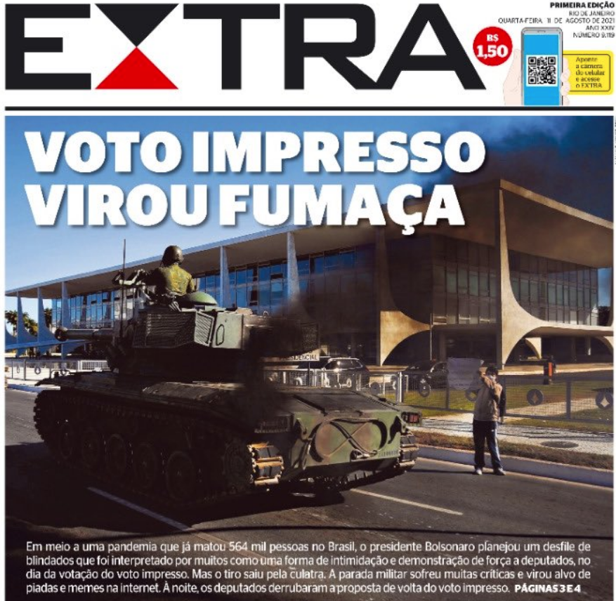 Enfim, como disse a capa do jornal Extra, “o voto impresso virou fumaça”…
