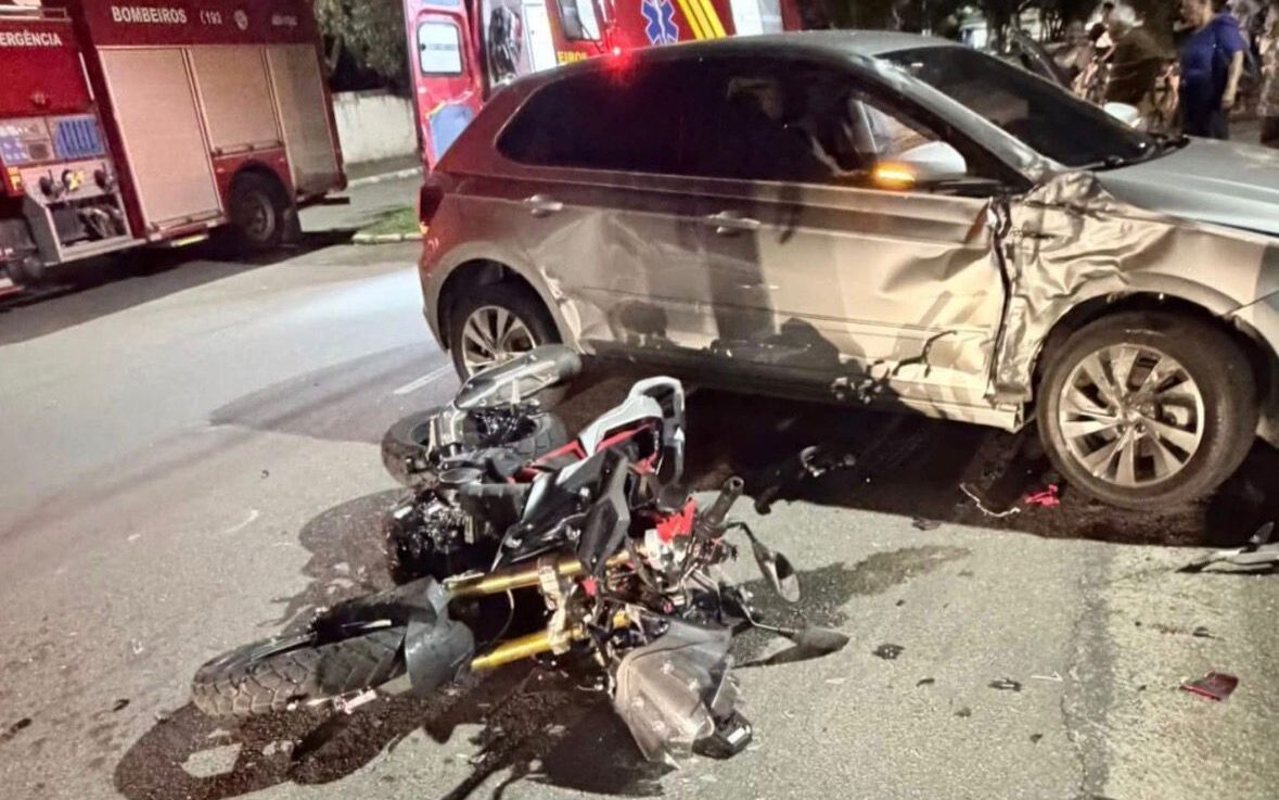 Quando o veículo já havia ultrapassado aproximadamente metade do cruzamento, a motocicleta, que trafegava no sentido contrário pela faixa da direita da pista de descida, teria surgido em alta velocidade e colidiu contra a coluna lateral do carro, quebrando o vidro da porta. Com o impacto, a condutora da motocicleta foi projetada sobre o automóvel e caiu na lateral da via.