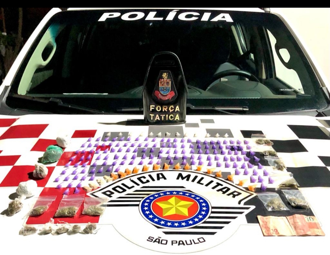 Em busca pessoal nada de ilícito foi encontrado, porém, no interior do saco plástico, foram localizadas 168 cápsulas contendo cocaína, 14 porções de maconha e a quantia de R$ 10,00 em dinheiro.