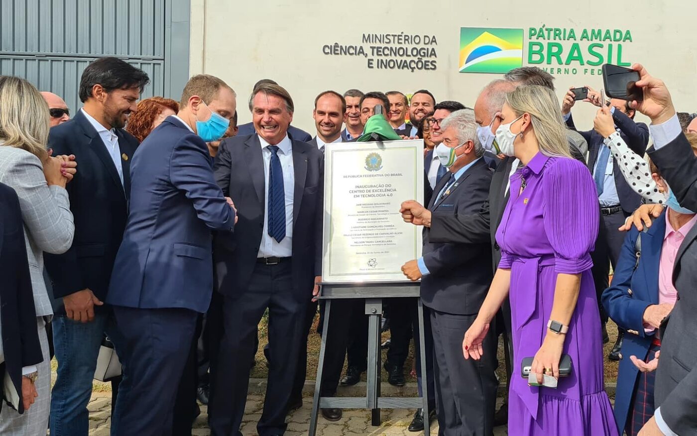 Ao lado de outras autoridades, Bolsonaro inaugurou o Centro de Excelência no Parque Tecnológico de Sorocaba (Foto: Reprodução)
