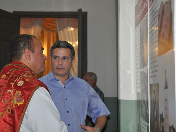 O espaço cultural da Igreja do Bom Jesus está reaberto à visita depois de ficar fechado no período agudo da pandemia. Entre fotos, documentos e textos, pode-se compreender melhor a fundação do primeiro centro do Apostolado da Oração, pelo padre Tadei, há 150 anos e outros aspectos da trajetória da igreja do Bom Jesus. Organizado pela Biblioteca História, o espaço foi inaugurado em 2017. A visitação gratuita pode acontecer de terça-feira a domingo, das 7h às 12h e das 14h às 17h. Na foto, o prefeito Guilherme Gazzola (PL), acompanhado do padre Adriano, na inauguração do memorial.