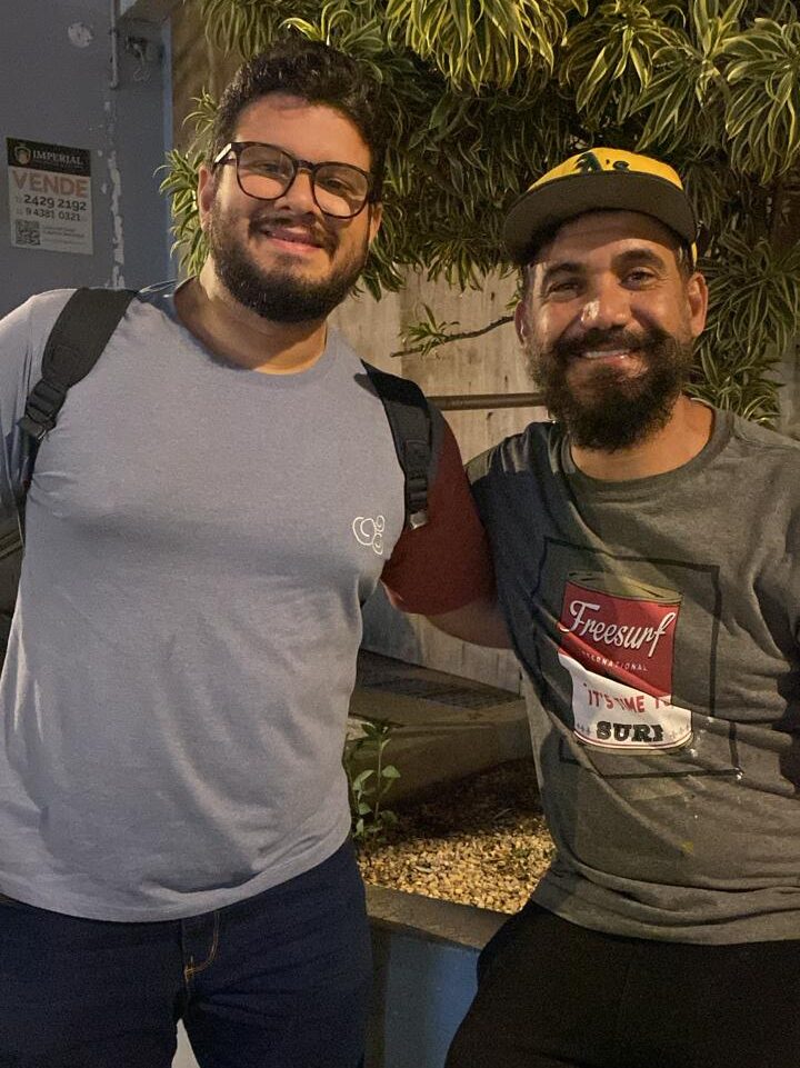 Felipe Romão aproveitou para tietar o artista (Foto: Arquivo pessoal)
