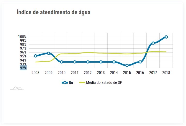 O relatório final com as análises do Programa Parcerias Municipais | Aliança Estado-Municípios aponta Itu como a cidade com o melhor índice de atendimento por serviço de abastecimento de água entre as 645 cidades do Estado de São Paulo. Com 100% de atendimento da população de 172.268 habitantes, a cidade liderou o ranking estadual em 2018, de acordo com dados divulgados pelo Sistema Nacional de Informações sobre Saneamento (SNIS) por meio do Ministério das Cidades, do Governo Federal.