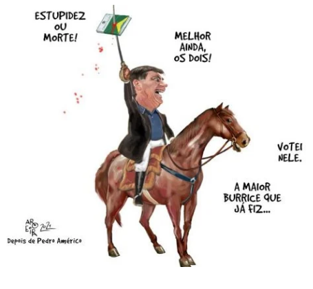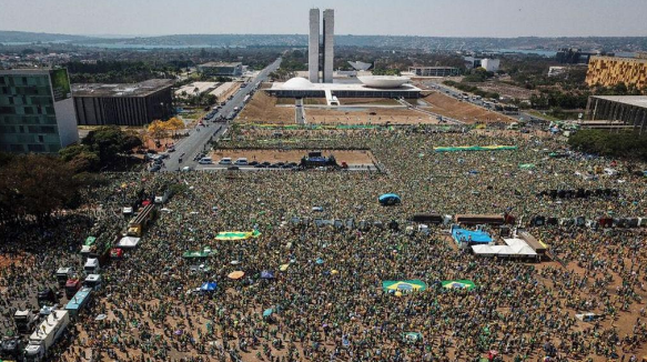 Foi lá que, em mais um discurso golpista, o genocida disse que “só Deus” o tira do poder.