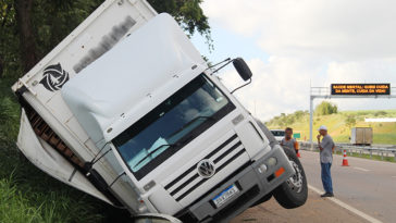 in Jornal TaperáCaminhão tomba nas margens da Rodovia do Açúcar após derrubar guard-rail