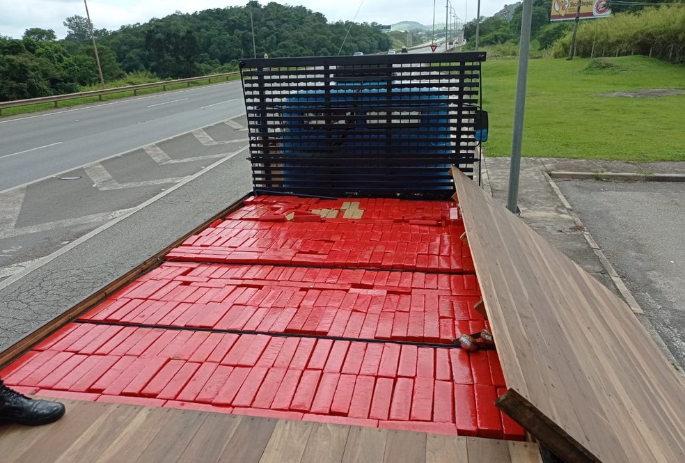 Ao chegar próximo ao motorista, os policiais perceberam que o indivíduo estava bastante nervoso, fazendo então com que as autoridades promovessem buscas no veículo, localizando as drogas depois de verificar um fundo falso do caminhão.