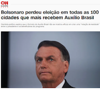 Em todas as cem cidades do Brasil que mais recebem o Auxílio Brasil, Bolsonaro perdeu . Isso quer dizer que a maior parte dos pobres sabe votar e não se deixar comprar. Percebeu que o benefício, dado a menos de três meses antes das eleições, era puramente eleitoreiro, e que iria acabar em dezembro. Pegou o dinheiro e votou em quem verdadeiramente diminuiu a pobreza no Brasil: Lula.