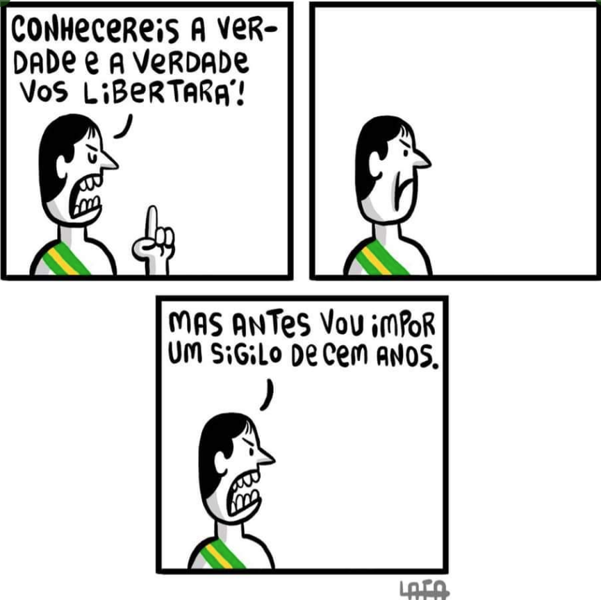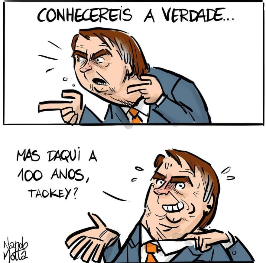 Os bolsominions que dizem querer voto impresso pela transparência são os mesmos que aceitam numa boa que o mito deles coloque tudo sob sigilo pelos próximos cem anos?