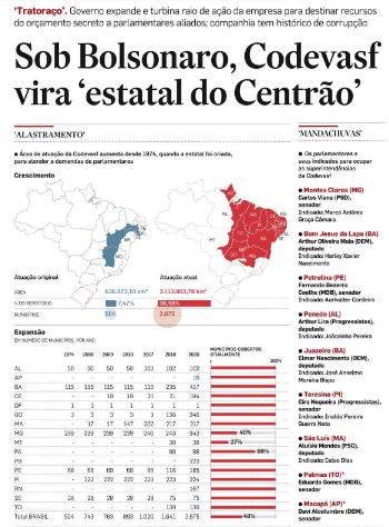 – Mostramos que a estatal Codevasf foi um dos canais preferenciais para escoar o dinheiro do orçamento secreto, com suspeitas de irregularidades, e como o órgão foi completamente aparelhado pelo Centrão e ampliado durante o governo Bolsonaro.