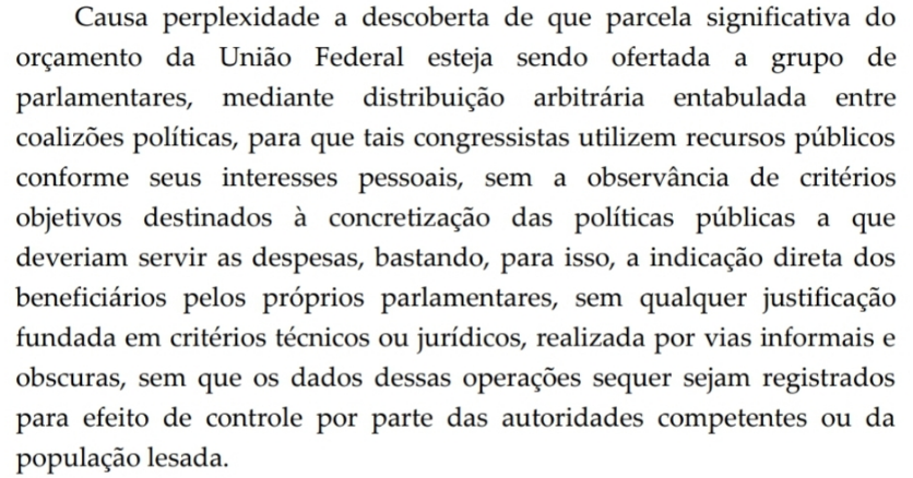 Para terminar, destaco alguns trechos da liminar da ministra Rosa Weber, do STF, que suspendeu os pagamentos com as emendas do orçamento secreto e determinou transparência. A série do Estadão denunciou todos esses pontos.
