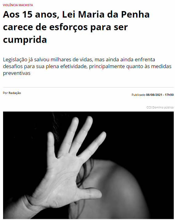 Estamos em 2021, a Lei completa 15 anos e ainda é necessário que os movimentos feministas continuem lutando para que esta conquista seja efetivada de fato. Lutando para que as redes de serviços de enfrentamento à violência contra as mulheres e de acolhimento a estas mulheres vítimas, funcionem de fato. O desmonte destas políticas públicas tem agravado o aumento significativo da violência contra nós mulheres e em especial os feminicídios.