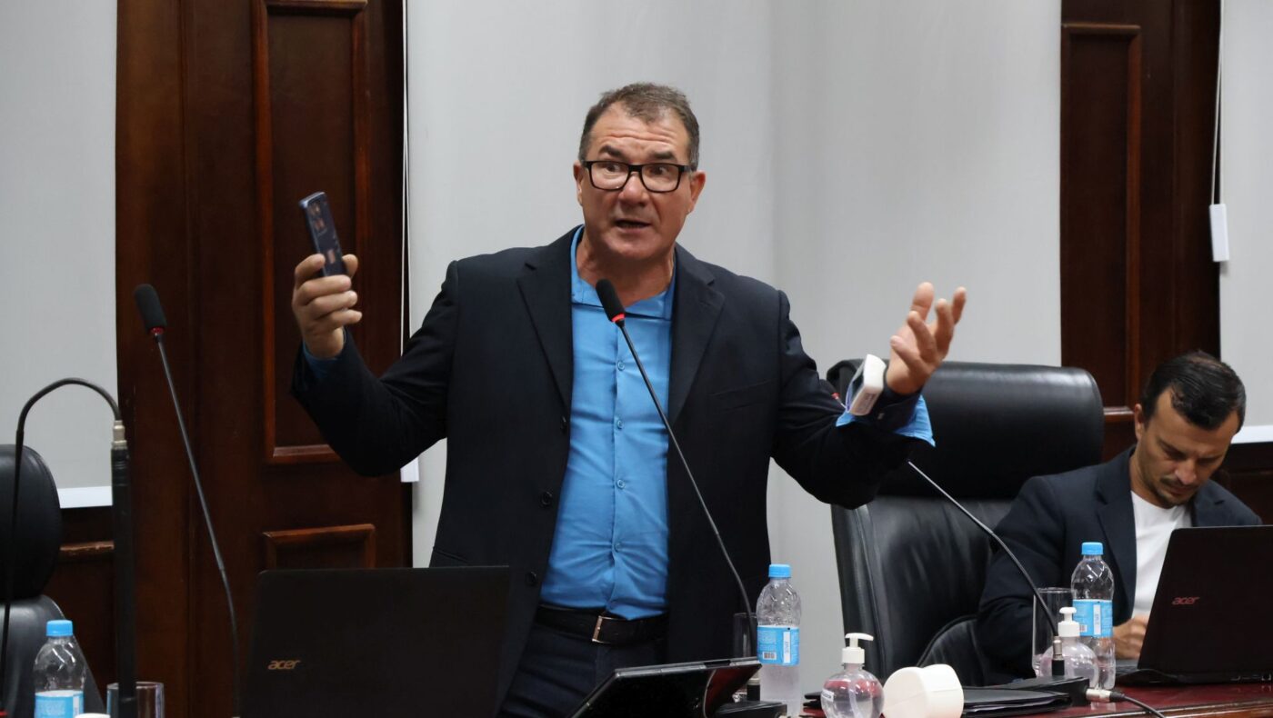 “Não pode usar áudio no plenário, a palavra livre é do vereador, não de terceiros”, alertou. “Mostra no regimento que eu paro”, retrucou Cova. Eduardo Ortiz (MDB) saiu em defesa do colega e disse que o regimento não prevê nenhum tipo de impedimento nesse sentido. Já José Galvão (PL) destacou que, em casos omissos, o presidente é soberano em deliberar.