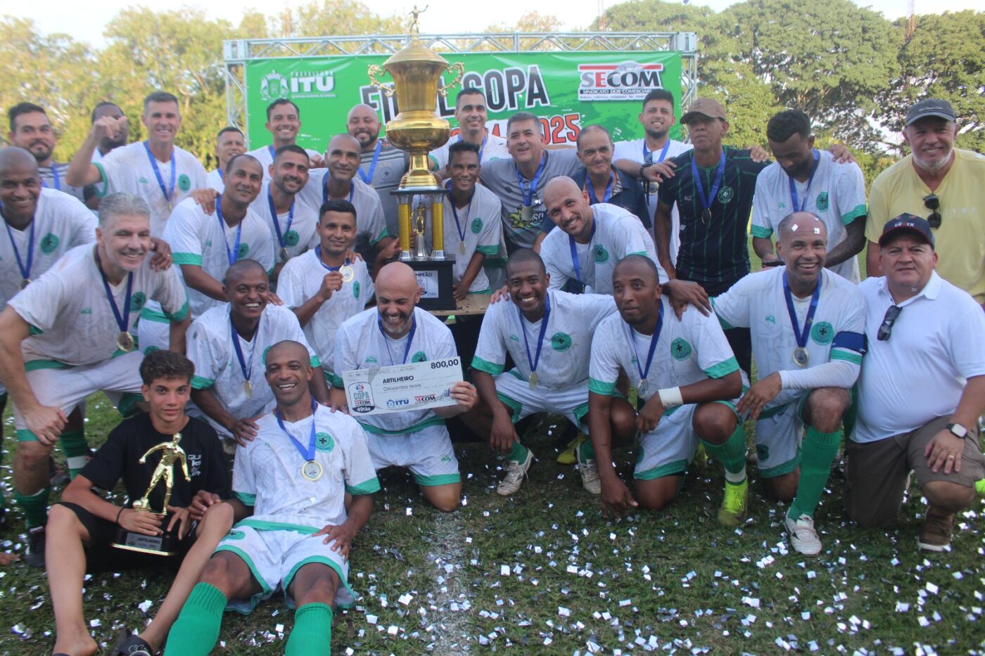 Em uma tarde de bom futebol e muita festa, chegou ao final a Copa Secom de Futebol 40tão, que culminou com a vitória do Santa Cruz Tabarro sobre o 1$$ Valor por 2×0.