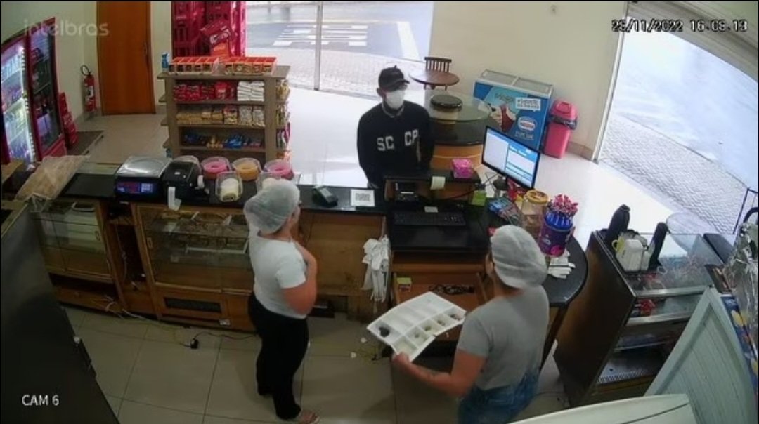 Suspeito teria ameaçado funcionárias de padaria durante assalto (Foto: Reprodução/Câmera de Segurança)