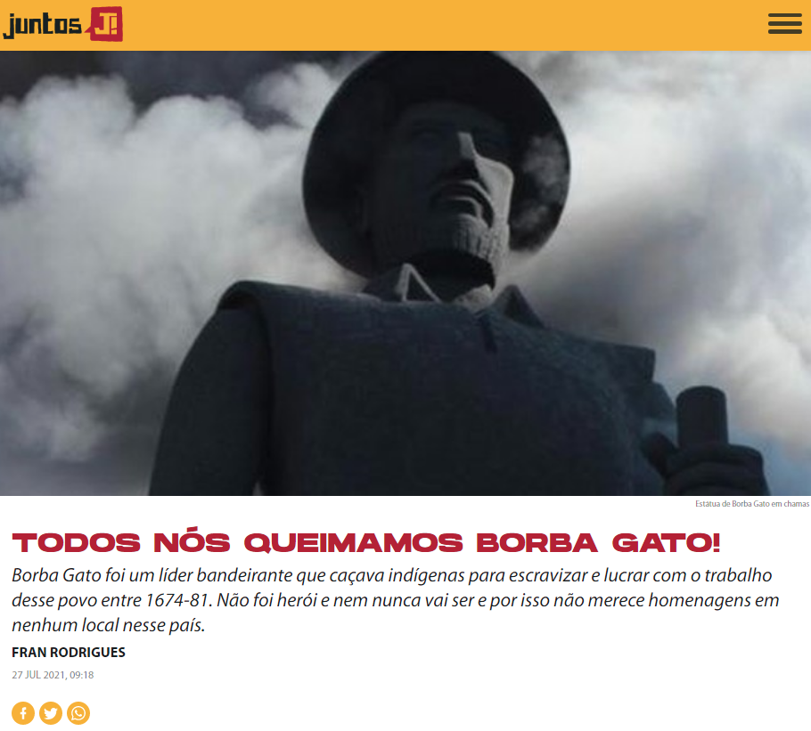 O problema é que homenagear escravistas nas ruas é algo muito importante no país que segue massacrando o povo indígena e nós não podemos permitir isso. Queimar a estátua de Borba Gato foi um ato revolucionário.